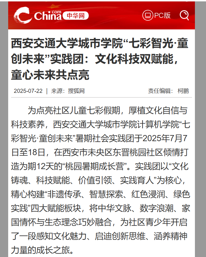 近日,中华网对我校学子暑期“三下乡”社会实践活动进行了报道。