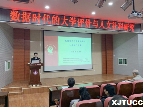 随后,汤建民教授在F100报告厅为我院教师做了题为 “数据时代的大学评价与人文社科研究”的学术报告。汤教授主要从数据库建设、计量方法研究、中国大学评价、人文社科领域的知识挖掘四个方面,介绍了中国本科院校评价指标体系、本科院校学科专业竞争力评价指标体系和原则、主要榜单等信息,汤教授指出,本科院校应将科研作为一项重要职能,要不断制定和完善科研制度,积极开展科研活动的组织、管理工作,尽快提高科研水平,要加强师资队伍建设,重视高端师资的引进和培养,争取先取得局部突破,激活和带动全局发展。汤教授还详细介绍了科教评价的理论基础——词频统计法和共词分析法等计量学评价方法,阐述了可视化知识图谱方法的优点,展示了各人文社科领域的研究热点和变化趋势。