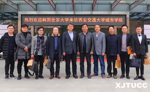 2019年12月12日下午,韩国世宗大学产业大学院院长裴基亨教授、工业设计学科长李明基教授、产品设计学科长金鎭成教授、经济通商学科长张梦泽博士、中国办公室负责人刘渝楷、王子瑞、孟海洋老师一行七人来访西安交通大学城市学院。学院院长陈光德、纪委书记朱普社、艺术系主任解安宁在行政楼608会议室与来宾进行了亲切友好的会谈。