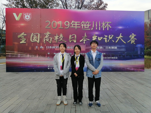 由南京大学和日本科学协会共同主办、日本财团特别赞助的2019年“笹川杯”全国高校日本知识大赛于11月15日至17日在南京大学举办。来自全国114所大学的近500名师生组队参与了此次大赛。西安交大城市学院外语系日语专业张佳琳、罗雅乔、赵伊寒同学参赛并获得优秀团体奖,樊华老师获得优秀指导老师奖。