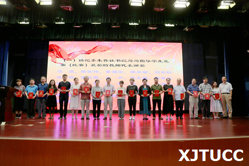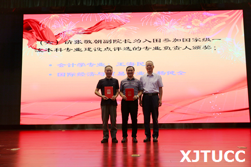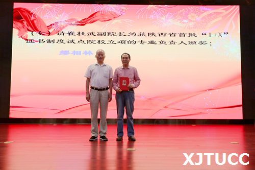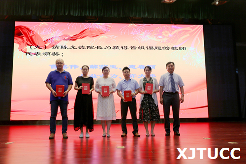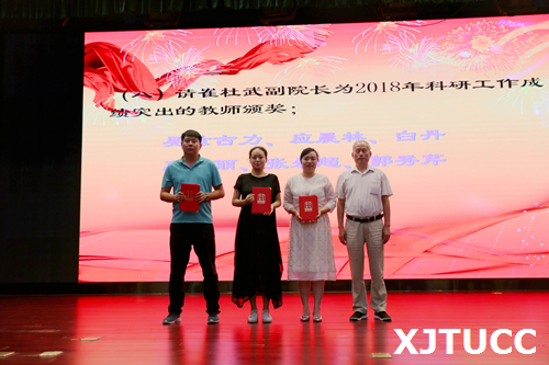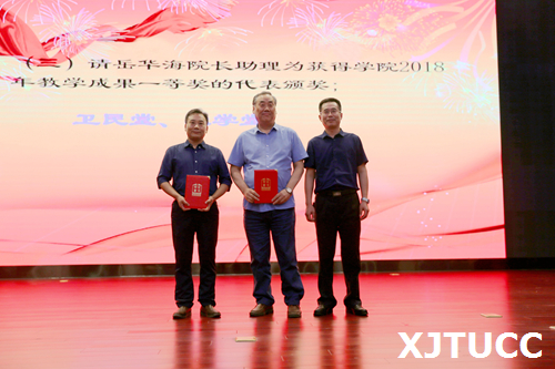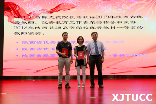 奏国歌仪式后,崔杜武副院长宣布受表彰人员名单,对一年来在教学、科研、指导学生竞赛方面取得成绩的先进个人进行表彰,一大批教职员工获得国家级、省部级和校级各类荣誉称号与奖励。与会院领导分别为获奖个人颁发荣誉证书。