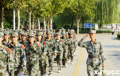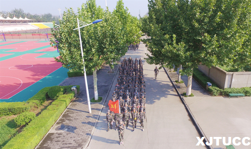 此次徒步拉练由学院南门出发,途径尚稷路、皂河东路、渭河桥路、锦城三路等路段,全程8公里。在团旗的带领下,20支连队的队伍排列有序,似长龙一般,迷彩着身,水杯入手,执着前行。