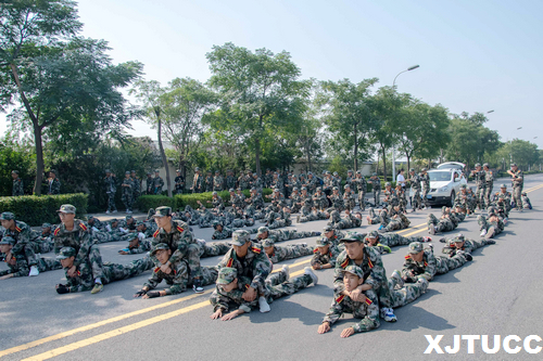 拉练当日气温适宜,阳光却格外刺眼,全团上下士气高涨,口号嘹亮,大家的情绪就像阳光般热烈。在徒步拉练中,男、女生连分别加入了“突击歼敌”“隐蔽疏散”科目内容,给单调的行军增添不少乐趣。一路上,通勤车运送着哨兵,在每个路口为拉练队伍保驾护航;教官和指导员分别走在队伍的首尾,给学员们加油鼓劲;后勤科的老师分发的矿泉水,给大家送来丝丝清凉。