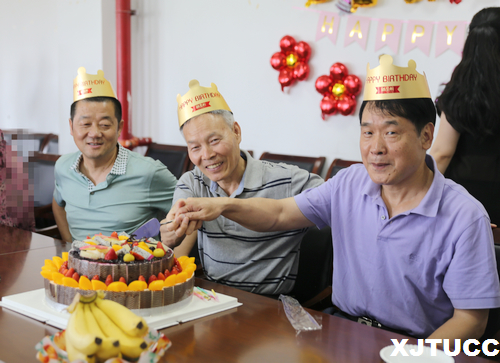 首先,工会主席王海民致辞,他肯定了学院工会的精心组织和安排,生日会的形式给教职工提供了一个交流和促进感情的平台,对于增加学院的凝聚力具有积极意义,并对过生日的教职工送上了生日祝福。接着,工会副主席宋月梅组织大家合唱生日歌、切蛋糕以及合影留念。最后,各位寿星分享了心情感言,互相交流,畅所欲言,欢声笑语不断。