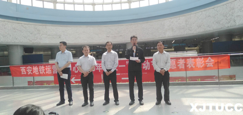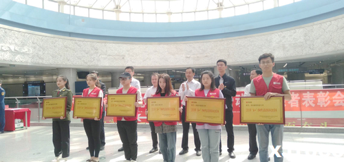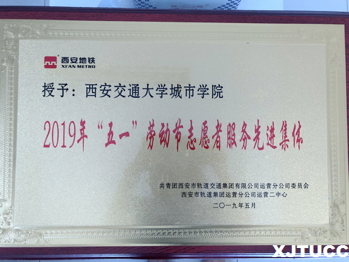 为弘扬志愿精神,表彰先进,5月17日,西安市轨道交通集团有限公司运营分公司运营二中心客运二部联合西安建筑科技大学、西安科技大学、西安交通大学城市学院等六所高校志愿者在四号线行政中心站举办2019年度“五一”劳动节志愿者表彰活动。我院荣获西安地铁2019年“五一”劳动节志愿者服务先进单位荣誉称号,李婉莹等10名志愿者荣获优秀志愿者称号。