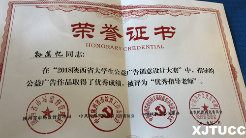 3月22日,由陕西省工商行政管理局、中共陕西省委高等教育工作委员会、陕西省精神文明建设指导委员会办公室、共青团陕西省委员会主办,陕西省广告协会承办的“2018 陕西省大学生公益广告创意设计大赛”颁奖典礼在美丽豪酒店举办。