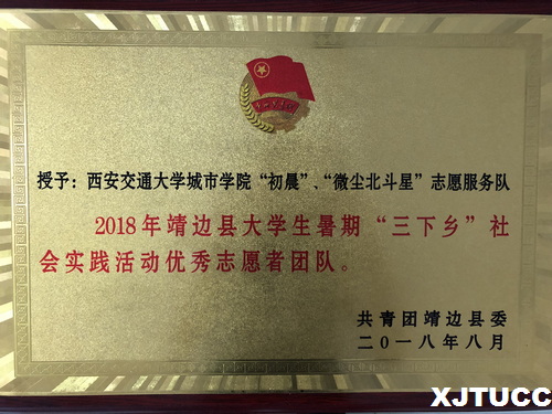 近日,西安交通大学城市学院“初晨”、“微尘北斗星”实践队荣获2018年靖边县大学生暑期“三下乡”社会实践活动优秀志愿者团队称号。