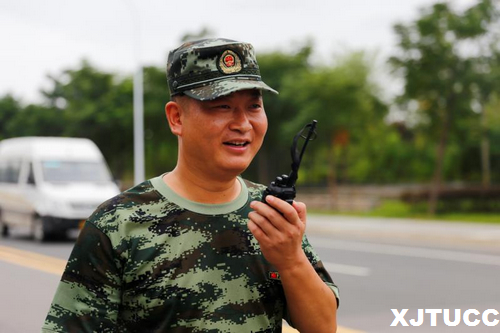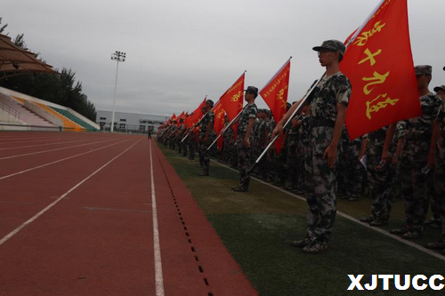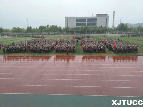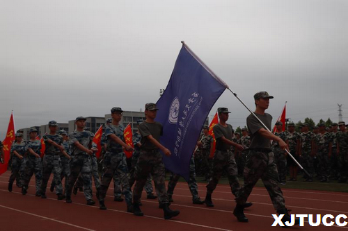 本次拉练从我院南门出发,途经尚稷路、皂河东路、渭河桥路等路段,全程6.8公里。拉练队伍在我院国旗护卫队和校旗的带领下,全团19个连队组成了一条极为壮观的迷彩“长龙”。拉练开始不久,忽降小雨。雨滴拍打在官兵的脸上,划出一道道水痕。然而,学员们仍口号嘹亮、步伐整齐,热情饱满。一路上,岗哨为拉练队伍拦截车辆,教官为我们呐喊助威,指导员更是紧跟连队保护着我们的安全。一路上红旗飘扬,军歌嘹亮,大家努力坚持。