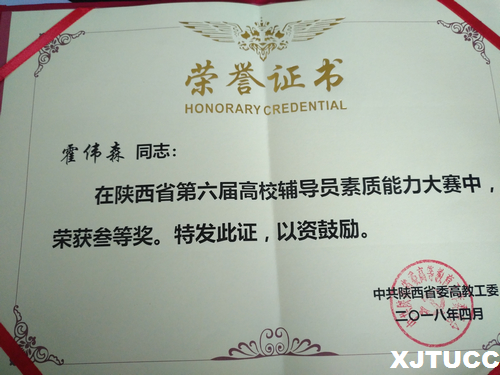 近日,由陕西省委高教工委主办的陕西省第六届辅导员职业能力大赛落幕,我院选派机械工程系学生主管霍伟森参赛,荣获三等奖。