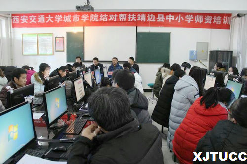 由西安交通大学城市学院和靖边县教育局共同举办的2017年基础教育与职业教育信息化师资第一期培训班于1月9日在靖边县职教中心开讲。