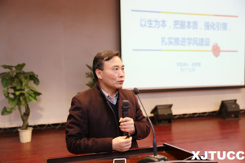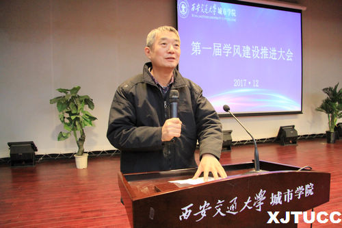 为了分析我院当前学风方面的问题与现状,进一步加强学风建设,建立健全学风建设的长效机制,12月20日,西安交通大学城市学院第一届学风建设推进大会在教二报告厅隆重召开。学院院长陈光德、党委书记冯民柱、副院长崔杜武、副院长张敬朝、院长助理徐君陶、院长助理岳华海、工会主席王海民、纪委书记朱普社,各系(部)、中心(部)负责人,全体辅导员、班主任、教师代表、学生组织代表、学生各班班长及部分学生代表出席了本次会议。大会由学院党委书记冯民柱主持。
