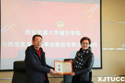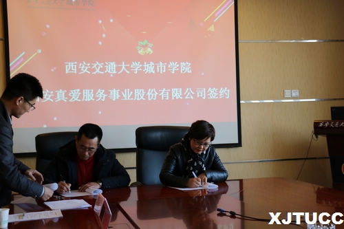 12月20日上午,西安交通大学城市学院管理系与西安真爱服务事业股份有限公司、京东物流西北区域分公司在行政楼608举行校企合作挂牌签约仪式。学院副院长崔杜武、院长助理兼教育基金会秘书长岳华海、学院教育基金会主管张超、管理系主任卫民堂、常务副主任冀祥、副主任郭关科、办公室主任许玮玮与西安真爱服务事业股份有限公司人力资源部副总经理岳美丽、人力资源部副部长王丽君、京东物流西北运营体系人力资源部经理李琦共同出席签约仪式。签约仪式由郭关科老师主持。