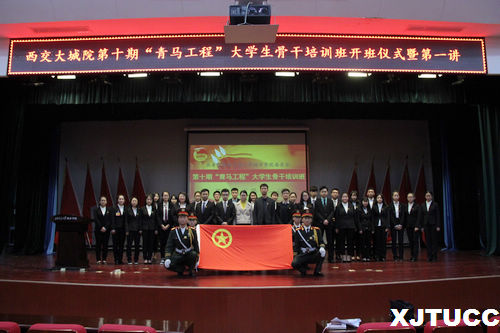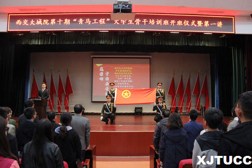 10月31日中午,共青团西安交通大学城市学院委员会在教二报告厅举办了第十期“青马工程”大学生骨干培训班开班仪式暨第一讲,大会由林玮主持。出席大会的领导和老师有:学院党委书记冯民柱,学生服务中心主任张学堂,思政理论教学部史正宪教授,思政理论教学部曹嘉伟、陈晋、李茂宁、常媛、梁晓菲老师,学院团委书记吴昊翔,团委韩树、茹静、丁义伟以及各系团工委老师、团学工作负责人,第十期“青马工程”大学生骨干全体学员参加了会议。