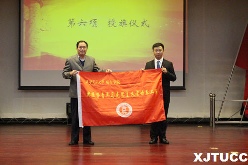 学院党委书记冯民柱向我院第十期“青马工程”大学生骨干培训班班长牛煜桐同学授青马班班旗,标志着第十期“青马工程”大学生骨干培训班正式开训。随后,学生服务中心张学堂老师对本次的开班仪式作总结讲话,他希望在座的学员能够积极学习马克思主义理论以及马克思主义中国化的最新理论成果,用党的十九大精神武装头脑,努力提高自己的综合素质。