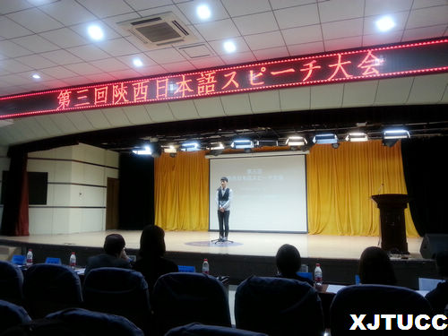 由西安市日语教师会举办、西北大学承办的第三届陕西省日语演讲比赛于10月21日在西北大学长安校区举行。来自西安交通大学、西安外国语大学 、西北大学、陕西师范大学等11个高校的13名日语专业学生参加了比赛。西安交通大学城市学院外语系日语专业平地克己老师和廖慧梅老师带队参赛,日语专业刘冬钦同学参加了比赛并荣获优秀奖,廖慧梅老师获得优秀指导教师奖。