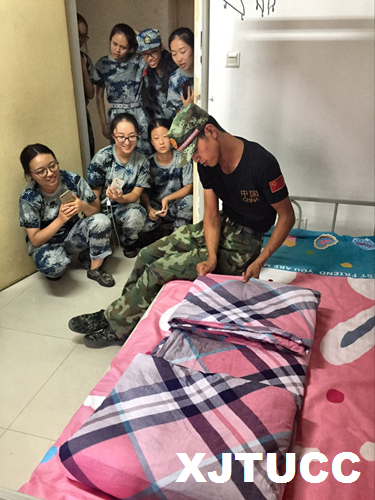 在检查的过程中,团长和政委与同学们亲切交谈,希望她们将这种良好的军人作风发扬光大,军训结束后仍能以军人的内务标准来要求自己,养成良好的生活习惯。