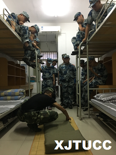 8月27日下午16时,军训团作训科组织开展了内务检查。全团干部分编成10个小分队,在团长段立峰中校、政委张学堂老师的带领下,分别前往6栋学生宿舍,按照内务整理标准对全体参训学生的宿舍进行了全面检查。