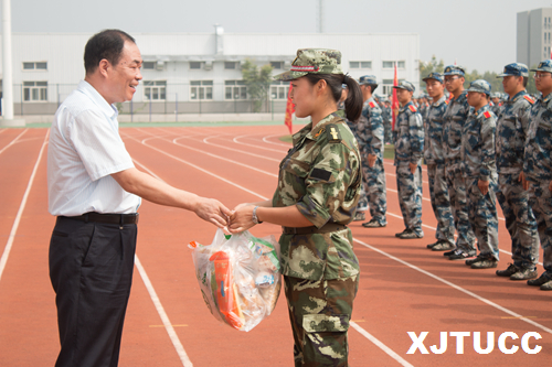 8月27日上午,学院党委书记冯民柱,教学服务中心主任陈晓南及各系相关领导一同前往训练场对全体军训官兵进行了慰问。慰问活动由军训团作训科科长辛红伟主持。