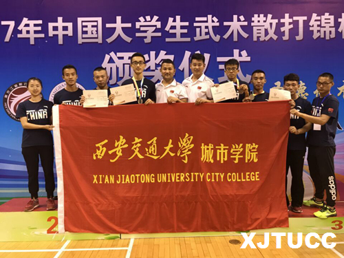 西安交通大学城市学院散打代表队是唯一一只参赛的独立学院,由6名运动员组成,在金玉柱、郑永权教练的带领下,认真备战,不畏强手,敢打敢拼,最终取得了2银1铜1个第5名的优异成绩。机械系13级王凯同学在男子甲组56公斤级比赛中,获得亚军;机械系16级朱宝泉同学获得70公斤级亚军;管理系14级杨勇同学获得52公斤级季军;经济系16级唐堃同学获得男子甲组75公斤级第5名。在教练员和团体评比中,学院代表队荣获“体育道德风尚奖”和“优秀代表队”称号,金玉柱副教授荣获“优秀教练员”称号,3名学生获得“优秀运动员”称号。