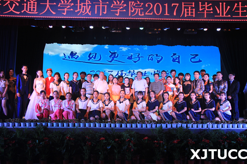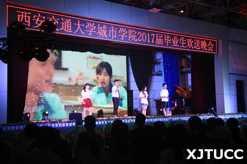 凤凰花开时,悠悠毕业季。西安交通大学城市学院2017届毕业生欢送晚会于6月26日19点在大学生活动中心隆重举行,学院党委书记冯民柱、副院长崔杜武、院长助理徐君陶、院长助理岳华海、工会主席王海民等学院领导以及各系、中心、部领导老师出席了此次晚会。本次晚会由2013级毕业生潘璞、曹梦泉、韩张弛、王睿雪主持。