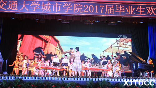 毕业晚会或许是毕业生离别之际的最后一次聚首,但这也是一段新的征程的开始。伴随着曼妙舞蹈《且听风吟》,一场属于毕业生的狂欢正式拉开了序幕。中阮独奏《悠远的歌声》引人共鸣,令人感动;文化艺术中心合唱团的合唱《友谊地久天长》和《明天会更好》,充满了对同窗情谊的不舍和对学校的留恋;礼仪队的走秀表演《学子风采》展现了城院学子的青春形象和风采;毕业生老师倾情演唱《那些花儿》,对毕业生寄予深切的祝福。此外还有充满活力的舞蹈、歌曲、交响乐合奏、配乐朗诵和话剧表演,晚会气氛十分热烈。