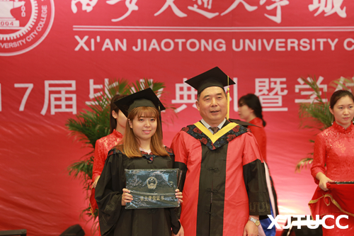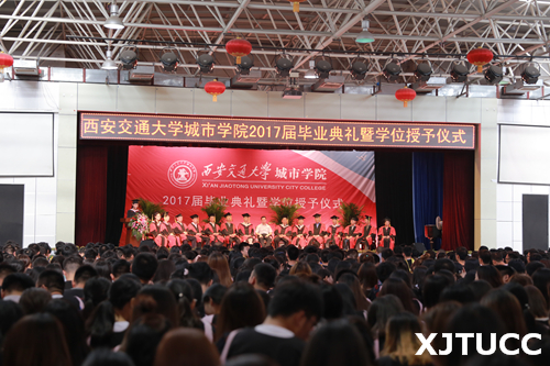 在主席台就座的嘉宾及领导为毕业生颁授了学位证书并合影留念。西安交通大学城市学院2017届毕业典礼暨学位授予仪式圆满结束,祝愿2017届全体毕业生在新的人生征程中一帆风顺,鹏程万里!