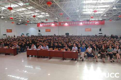 在庄严肃穆的国歌声中,大会正式开始。首先,崔杜武副院长汇报2017届毕业生学业情况。2017届毕业生中,有2446人分别取得经济学、文学、理学、工学、管理学、艺术学学士学位。崔院长对2017届毕业的全体同学表示热烈祝贺,并衷心祝愿所有毕业生在自己新的工作岗位上继续书写人生美好的未来,为实现自己的梦想谱写新的篇章。