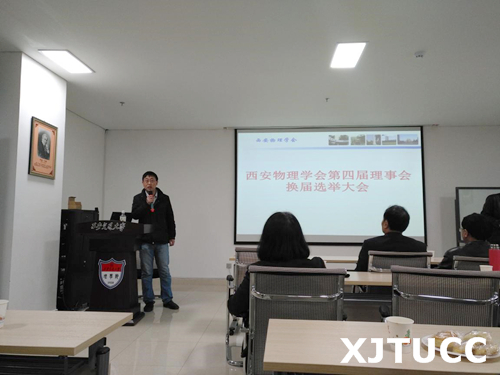 近日,西安物理学会第四届换届选举大会在西安交通大学仲英楼二楼会议室召开,与会代表来自西安交通大学、西北工业大学、陕西师范大学、西安理工大学、西安工业大学等高校,也有来自西安教育科学研究所、西安交大附中、西电中学等学校的中学教育代表。大会审议了第三届理事会工作报告和财务报告,经过选举产生了第四届理事会和常务理事会。我院竹有章副教授、牛海波副教授当选为常务理事,竹有章副教授当选为理事会秘书长,同时我院成为西安物理学会挂靠单位,组织协调学会日常工作。会议最后召开了常务理事会议,确定了第四届工作目标和计划,并对各位副理事长作了分工,分别带领科研、高等教育、中等教育以及科普等工作组开展工作。