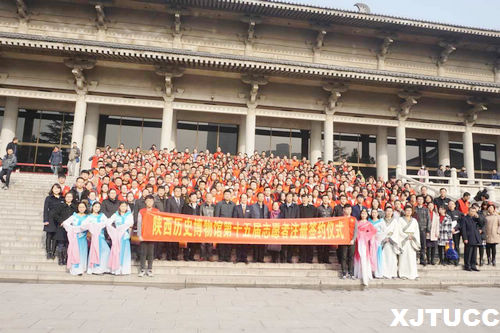 11月27日上午,陕西历史博物馆志愿者十五周年注册签约仪式在陕历博贵宾厅隆重举行。陕西历史博物馆党委书记强跃、副馆长程旭以及包括我院团委书记吴昊翔老师在内的19所高校领导出席了此次签约仪式。与会的还有来自西安交通大学、西北工业大学、西北大学等高校的优秀青年志愿者代表。