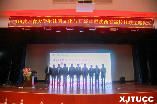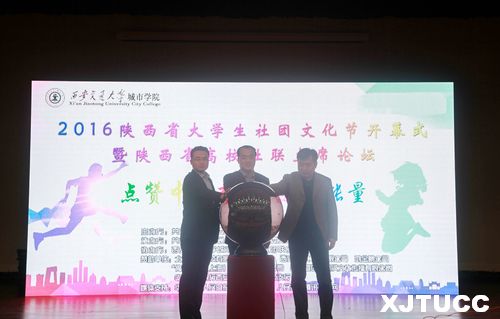 为深入贯彻落实党的群团会议精神,结合全省为实现“中国梦”和“三个陕西”的统一要求,进一步推动陕西省高校学生社团有序、高效发展,充分发挥高校校园文化育人重要功能及高校社团对社会文化发展的引领作用,共青团陕西省委、陕西省学生联合会联合举办2016 年陕西省大学生社团文化节。开幕式于10月27日下午在西安交大城市学院教二报告厅隆重举行。共青团陕西省委副书记徐永胜、陕西省学生联合会主席陈怀祥、城市学院院长陈光德、党委书记冯民柱、院长助理岳华海、学生服务中心主任张学堂、团委书记吴昊翔以及学院团委、各系团工委老师、50余所高校社联主席、社长代表出席了本次活动。同时,中国农业银行西安经济技术开发区支行副行长侯双权、北京锦时科技有限公司CEO周忠孝、“俺来也”(上海)网络科技有限公司CEO等支持此次社团文化节的企业家代表以及华商网、人民日报社·人民数字、人民网、腾讯大秦网等多家媒体代表参加了本次活动。开幕式由陕西省学生联合会驻会主席强怡星主持。