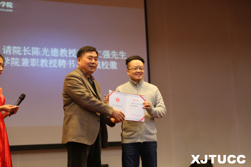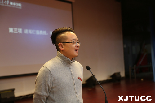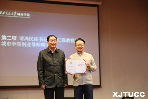 10月26日下午,西安交通大学城市学院在教二报告厅隆重举行郑仁强兼职教授、创业导师聘任仪式暨学院第五届创新创业竞赛启动仪式。院长陈光德、党委书记冯民柱、学生中心主任张学堂及各班学生代表参加此次活动。聘任仪式由院长助理徐君陶主持。