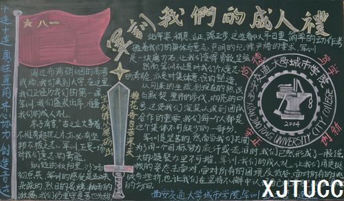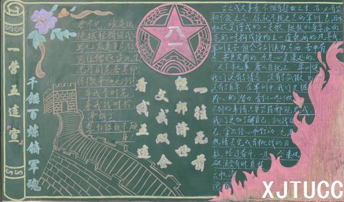 各连队在指导员的悉心指导下,围绕军训生活、军训感悟、军训体会、连队心声、教官寄语等内容,由同学们自主创作完成。板报作品主题鲜明,生动形象,国旗、军徽、党旗、万里长城、象征和平的白鸽、保卫国家的军人等充满正能量的元素,被同学们巧妙地运用到板报制作中。对教官的感谢,对军训的感想,对历史的回顾,对阅兵的期待,对大学生活的憧憬等文字与图画相得益彰,充分展示了当代大学生的民族情怀和良好的精神风貌,为军训增添了一抹亮丽的色彩。