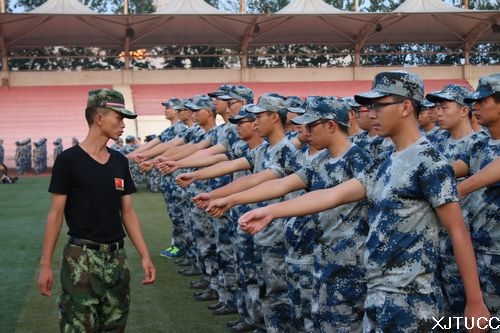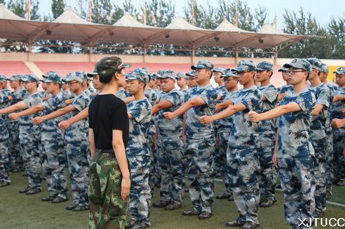 烈日下,操场上,同学们从“踏步”“稍息”“立正”“停止间转法”“向左向右看”“蹲下”开始学起。每一个动作,都由各位教官亲自分解示范与指导。从摆臂到踢腿,从握拳到绷脚,都要通过教官严格把关。尽管赤日当空,酷暑难挡,城院学子们依旧昂首挺胸,认真完成好每一个动作。他们正以实际行动证明着他们的决心。指导员们一直在连队旁陪着同学们,安慰想家的同学,及时送伤病员就诊,安排着板报制作、稿件宣传等工作,用他们的思想和魅力,教育、引导、关心和鼓励着每位同学。