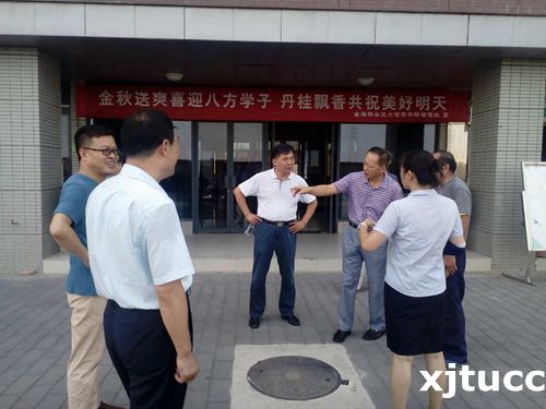 8月19日下午,西安交通大学城市学院陈光德院长、冯民柱书记带队,副院长张敬朝、院长助理徐君陶、纪委书记朱普社及教学服务中心、学生服务中心、条保部、保卫部等相关部门负责人等检查校园环境布置情况和迎新报到现场准备情况。