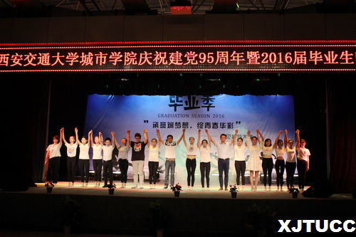 西安交通大学城市学院庆祝建党95周年暨毕业晚会就此落下帷幕,但故事没有结束,梦想才刚刚开始,承起斑斓梦想,绽青春之华彩,祝福毕业的学子们前程似锦,人生更加精彩!