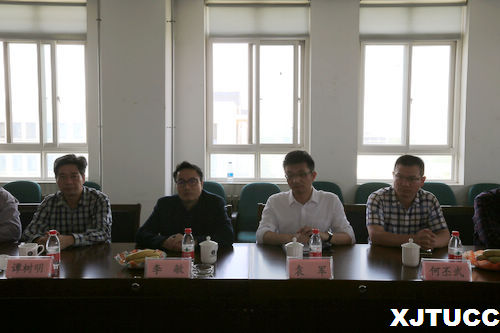 5月3日下午,广东寸金教育集团董事长、总裁李敏等一行十九人来访西安交通大学城市学院,城市学院副院长崔杜武、经济系主任杨健全、电信系主任赵录怀、计算机系副主任李联宁、教学服务中心副主任王小青、党政服务中心主任助理姬志国与来宾在行政楼504会议室座谈。
