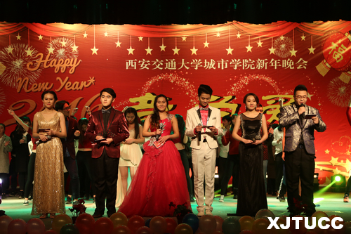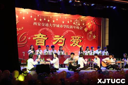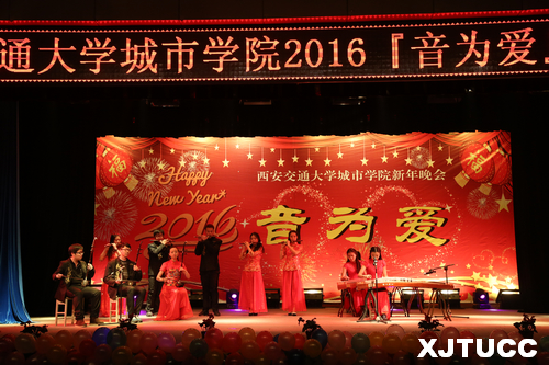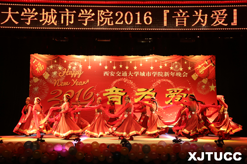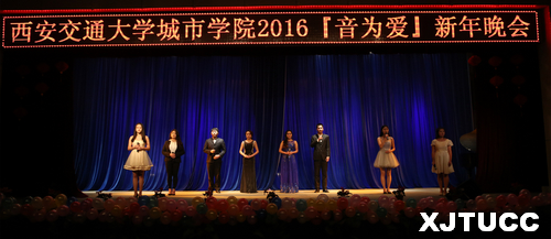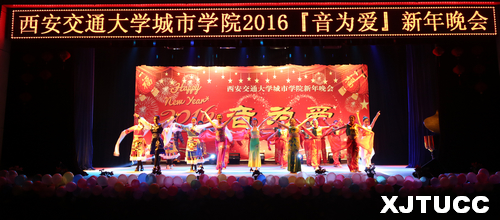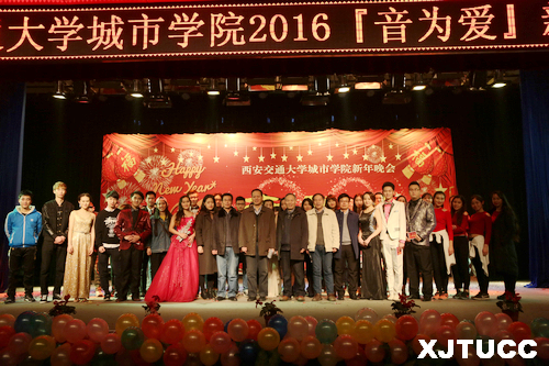 2015年12月29日晚7点,西安交通大学城市学院2016『音为爱』新年晚会在大学生活动中心隆重举行。学院副院长张敬朝,院长助理兼财务部主任岳华海,工会主席王海民,资产与招标办公室主任郭征旭,学生服务中心主任张学堂,计算机系主任缪相林,各系学工办老师、团工委书记及各系部分学生,全院千余名师生共同欣赏了这场艺术盛宴。晚会由曹梦泉、王睿雪、王思哲、袁磊、叶宇萌、史青等六位同学联袂主持。