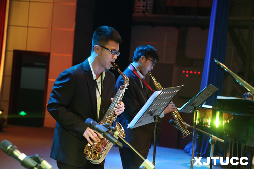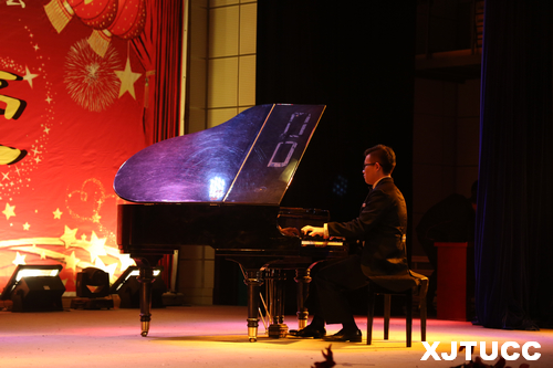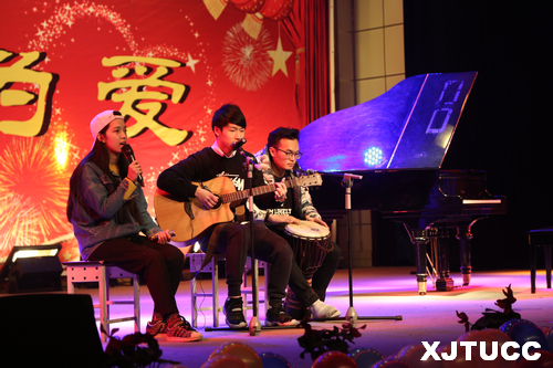 在开场舞的推动下,晚会气氛渐浓,让我们在辞旧迎新之际,深深品味包括演唱、乐器、舞蹈、音乐小品等多种表演形式的艺术魅力。耳熟能详的民谣歌曲《那些花儿》被常松凯,姜马娜,王博灏三位同学用吉他、非洲鼓演绎出了独特的味道。学生会同学带来的创意十足的音乐剧茶杯秀《CUPS》,尤克里里与吉他的伴奏加上纸杯的绝妙配合赢得了观众热烈的掌声。一首清唱的A cappella《情非得已》优美动人,引人入胜。民乐合奏《花好月圆》节奏活泼明丽、优美典雅,短促、快速而富于弹性的旋律,似要把人带入法国宫廷舞会的场面中去。民族舞《心声》轻盈、飘逸的舞姿,将鸿雁自由翱翔之态与女性的柔美完美结合,让所有人感受到了中华民族动人的传统魅力,观众的心情跟着音符起舞。安塞腰鼓《大拜年》及管乐合奏《回家》征服了现场观众。由DM音乐社带来的歌曲联唱《好好说再见》、《你不会》令观众感受到音乐的独特魅力,一支爵士舞《Crazy》中更是彰显了我院学子的青春热情,将现场气氛推向高潮。大学生广播台带来的朗诵作品《辉煌十二载 筑梦城院人》更是表达了莘莘学子们对母校的深沉情怀和诚挚的祝福。最后晚会在歌舞《相亲相爱》中圆满落幕。