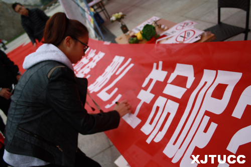 我院现有公益实践类社团共24家,其中包括支农促进会、青年志愿者协会、未来创业协会、职业规划与就业学社等。11月17日他们在喷泉广场举办“风雨同舟”系列主题活动,其中以绿舍环保协会协议签订--《无烟日》活动最为亮眼。他们组织学生签订“倡导无烟校园”签名活动,积极宣传和倡导健康生活,让人们认识到吸烟严重危害着人们健康,影响着我们身边的环境质量。公益实践类社团希望通过这种方式号召大家热爱生活,注重健康,为他人创造清新的环境。