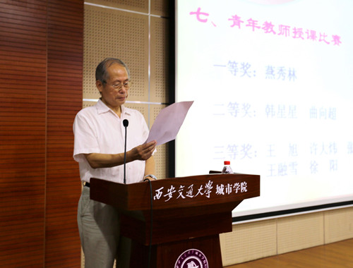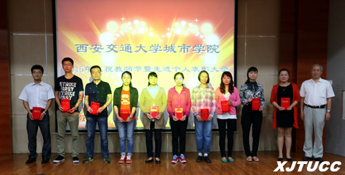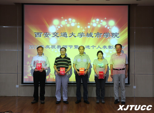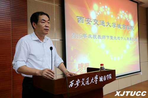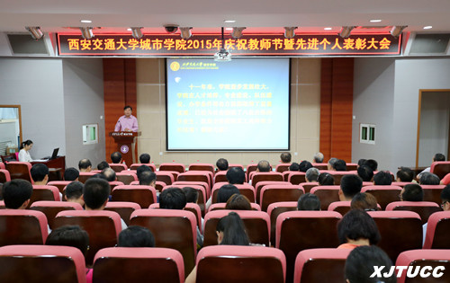 爱岗敬业育英才,无私奉献写春秋。在第31个教师节到来之际,2015年9月10日下午,西安交通大学城市学院2015年庆祝教师节暨先进个人表彰大会在F100报告厅召开。学院领导、各部门负责人、主管以上人员、受表彰人员、教职工代表和学生代表参加了大会。会议由党委书记冯民柱主持。