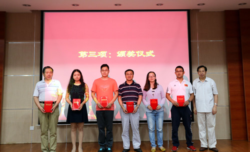 在庄严的奏国歌仪式后,崔杜武副院长宣布受表彰人员名单。陈光德院长、崔杜武副院长、张敬朝副院长、工会主席王海民教授、教授会主席诸文俊教授分别为受表彰人员颁奖。教师代表王梅芳、学生代表刘宇分别发言。