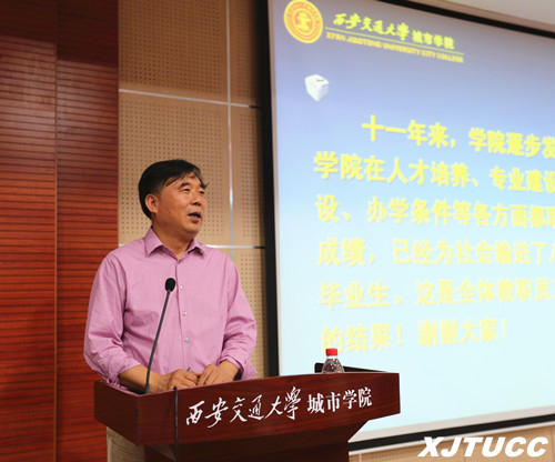 城市学院已经走过了十一年的发展历程,已为社会输送了八批合格的毕业生,所有优异的成绩都是学院全体教职工共同努力和社会各界大力支持的结果!全体教职员工辛勤耕耘、无私奉献、爱岗敬业所体现的精神是交大城院不断发展的原动力。他指出目前学院正处在发展的关键时期,全院上下特别是领导干部,应统一发展思想,增强忧患意识和危机感,敢于正视和解决问题,要更加清醒地看到,加强教师队伍建设,是应对高等教育激烈竞争的严峻挑战,是提高我院综合实力和核心竞争力的必然要求,是实现跨越式、内涵式发展的迫切需要,是实现学院“建设国内一流、国际知名高水平应用型大学”办学目标的关键举措。