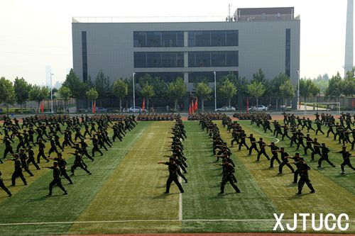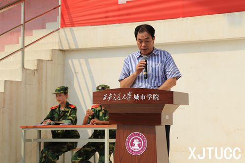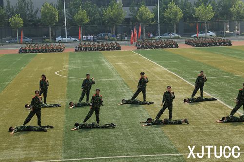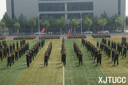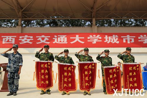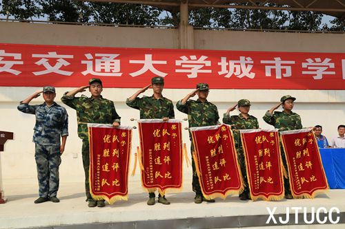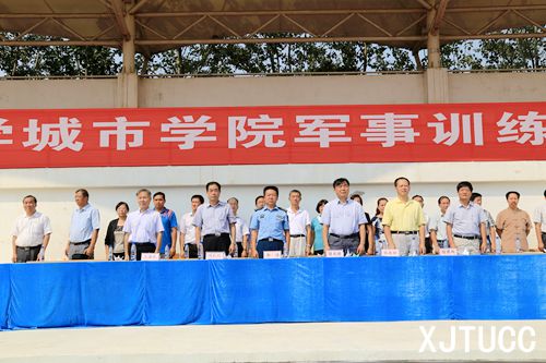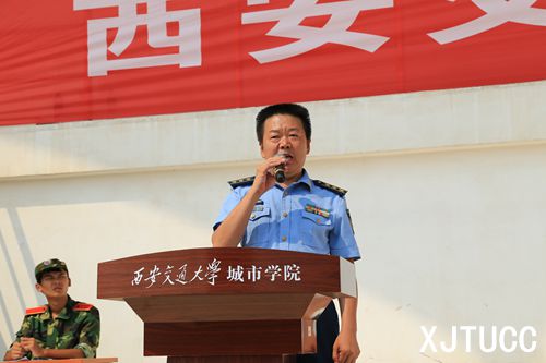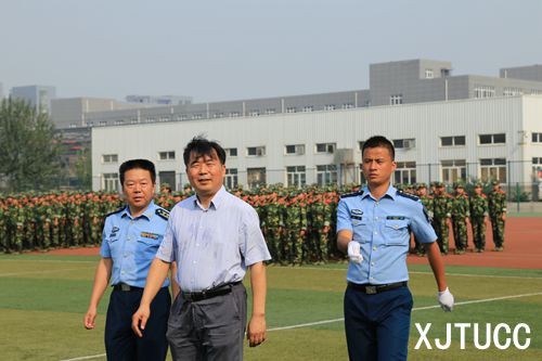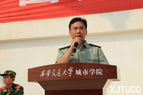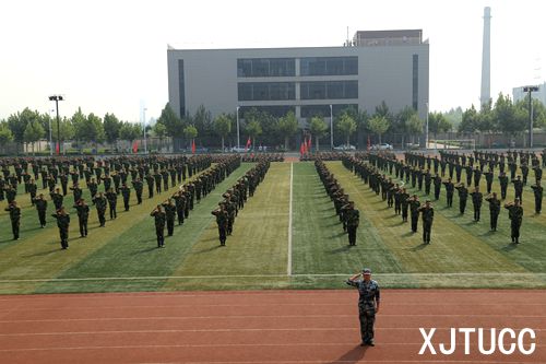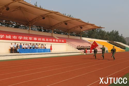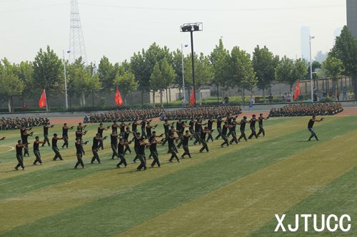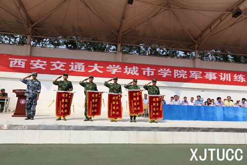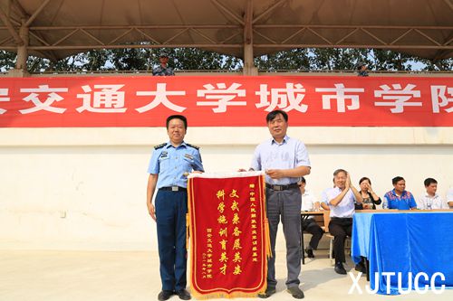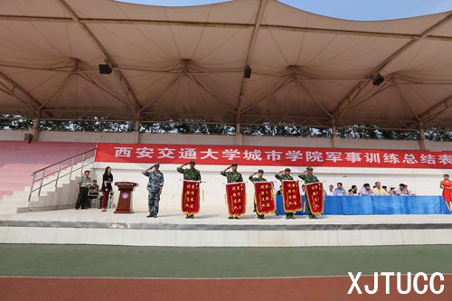 8月28日上午,西安交通大学城市学院2015级学生军训总结表彰大会在学院田径场隆重举行。学院院长陈光德,党委书记冯民柱,副院长张敬朝,院长助理徐君陶,工会主席王海民,军训团团长、中国人民解放军空军训练基地部长李涛上校,计算机系主任缪相林,电信系主任赵录怀,管理系主任卫民堂,艺术设计系主任解安宁,图书馆馆长叶春峰,资产与招标办公室主任郭征旭,体育部主任金学斌,教学服务中心常务副主任陈晓南,机械系常务副主任郑爱萍,数学教学部副主任于大光,物理教学部副主任牛海波,人文社科系副主任史正宪,经济系副主任史冬梅,外语系副主任赵永生以及承担本次军训任务的教官和指导员参加了大会。军训团参谋长、中国人民解放军空军训练基地王军上尉担任本次汇报演出的总指挥。大会由军训团政委、学生服务中心主任张学堂主持。