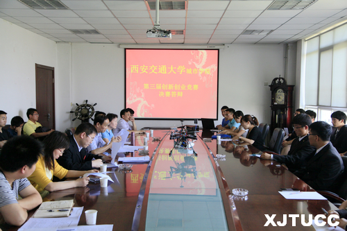 据悉,学院第三届大学生创新创业竞赛自去年9月份启动以来,历时10个多月时间。组织者经对提交作品初审、复审,最终进入决赛的作品共10件。决赛作品分别为创新类作品和创业、创意类作品。校内部分专业专家受邀莅临会场担任评委,同时首次邀请了西安绘锦园文化创意孵化园刘海军、大普科技孵化园周晨部长担任决赛评委。经过评审,最终评选出二等奖2项,三等奖3项,优秀奖27项。