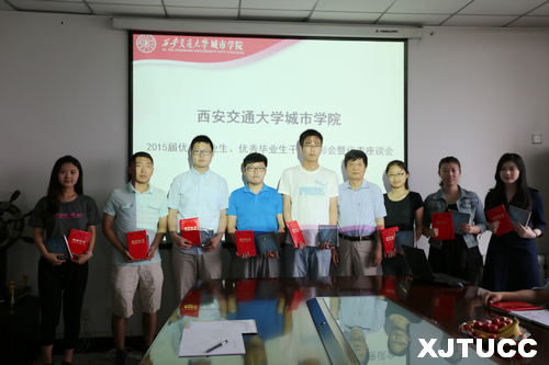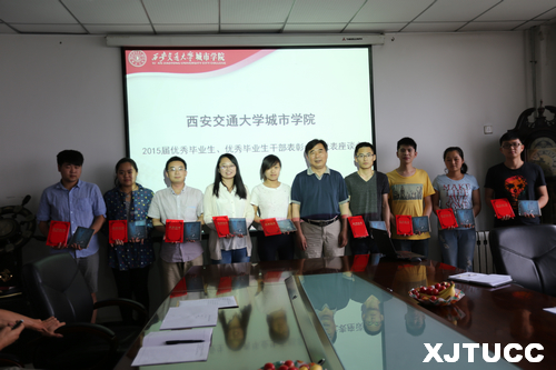 6月3日下午,西安交通大学城市学院2015届优秀毕业生、优秀毕业生干部表彰会暨代表座谈会在行政楼508会议室举行。学院院长陈光德、院长助理俆君陶、学生服务中心主任张学堂、教学服务中心主管李志勇、学生服务中心张福全出席了本次座谈会。张学堂主任主持会议。