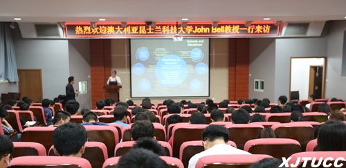 来访期间,John Bell教授为学院电信系、计算机系、机械系大一和大二的学生作了昆士兰科技大学校园文化宣讲报告。他开场以一幅优美的校园全景照片引出QUT所处市中心的优越地理位置,再介绍到QUT拥有世界最大的电子触屏展示厅,学生可通过亲自触屏见证卫星发射升空的神奇瞬间,在场学生们赞叹不已;接着他还讲到QUT的优秀学生毕业后申请到牛津大学的博士全额奖学金、自己创业成立人工智能专业公司、继续到世界顶尖工程科学院深造就业等学生培养案例。会议结束后,部分有意向赴澳留学的同学就留学费用、澳洲工作签证、学分互认等问题进行了详细询问。