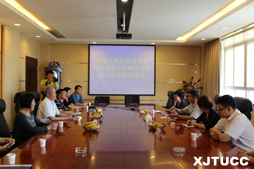 5月26日上午,中国人寿西安分公司副总经理曹庆利先生等一行6人莅临城市学院,就校企合作、实训基地建设等合作事项来院洽谈。西安交通大学城市学院副院长崔杜武、教学中心副主任杨振坤、经济系主任杨健全、副主任史冬梅、郭关科及部分经济系教师与来访人员进行了座谈交流。