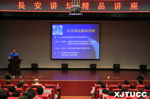 4月29日下午,由陕西省社会科学界联合会与西安交通大学城市学院联合主办的长安讲坛精品讲座在城市学院教二报告厅举行。此次讲座特邀陕西省社会科学院学术委员会副主任、研究员,区域发展咨询中心主任张宝通主讲。城市学院党委书记冯民柱、副院长崔杜武、院长助理徐君陶及师生200余人聆听了讲座。讲座由冯民柱书记主持。