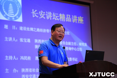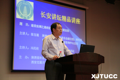张宝通主任以“建设丝绸之路经济带与陕西发展定位”为主题,从一带一路伟大构想的提出背景、意义入手,阐述了陕西作为丝绸之路经济带新起点以及西安作为丝绸之路经济带中心的发展定位,语言生动,案例详实,精神饱满,使在座师生获益良多。