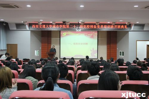 4月8日晚7点,西安交通大学城市学院第二十二期党校预备党员培训班开班典礼在F100多功能报告厅隆重举行,学院党委书记冯民柱、人文社科系副主任史正宪应邀出席,开班典礼由学生服务中心米梅主持。